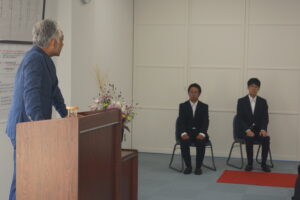三宅社長からの激励の言葉に、内定者一人ひとりが真剣な表情で耳を傾け、社会人としての第一歩を踏み出す決意が感じられました。